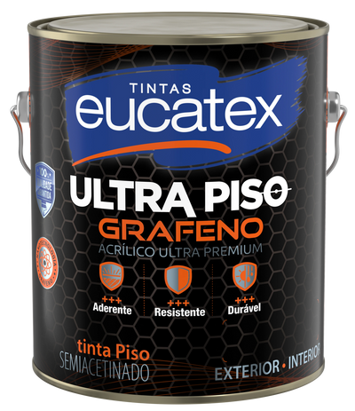 A tinta de piso grafeno da Eucatex é a melhor versão dentre as opções acrílicas para pintar pisos cimentados e concreto, como calçadas, que a marca possui. Ela tem o acabamento semiacetinado que dá um leve brilho para facilitar a limpeza e tecnologia de alta resistência, aderência e durabilidade. Obs. Esse produto não deve ser aplicado em pisos cerâmicos ou outros pisos lisos de baixa porosidade como cimento queimado.
